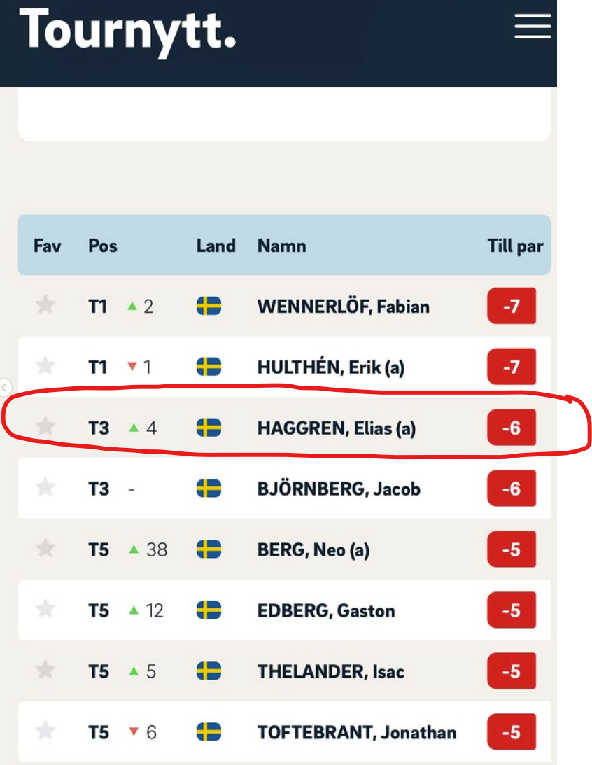 Elias Haggren går på riksidrottsgymnasiet i Helsingborg (”The RIG”) och satsar fullt ut på att framgent bli professionell golfspelare.